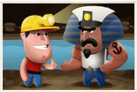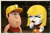 Yellow arrows for Main Quests, Orange arrows for Father Quests, Blue arrows for optional Side Quests. Down-arrows lead to next quest/mine, Red Up-arrow is the end of a quest-line. Right arrows unlock other Quest-lines and can be clicked on to take you to the next quest-line.