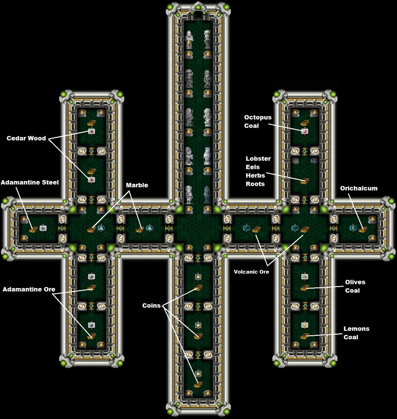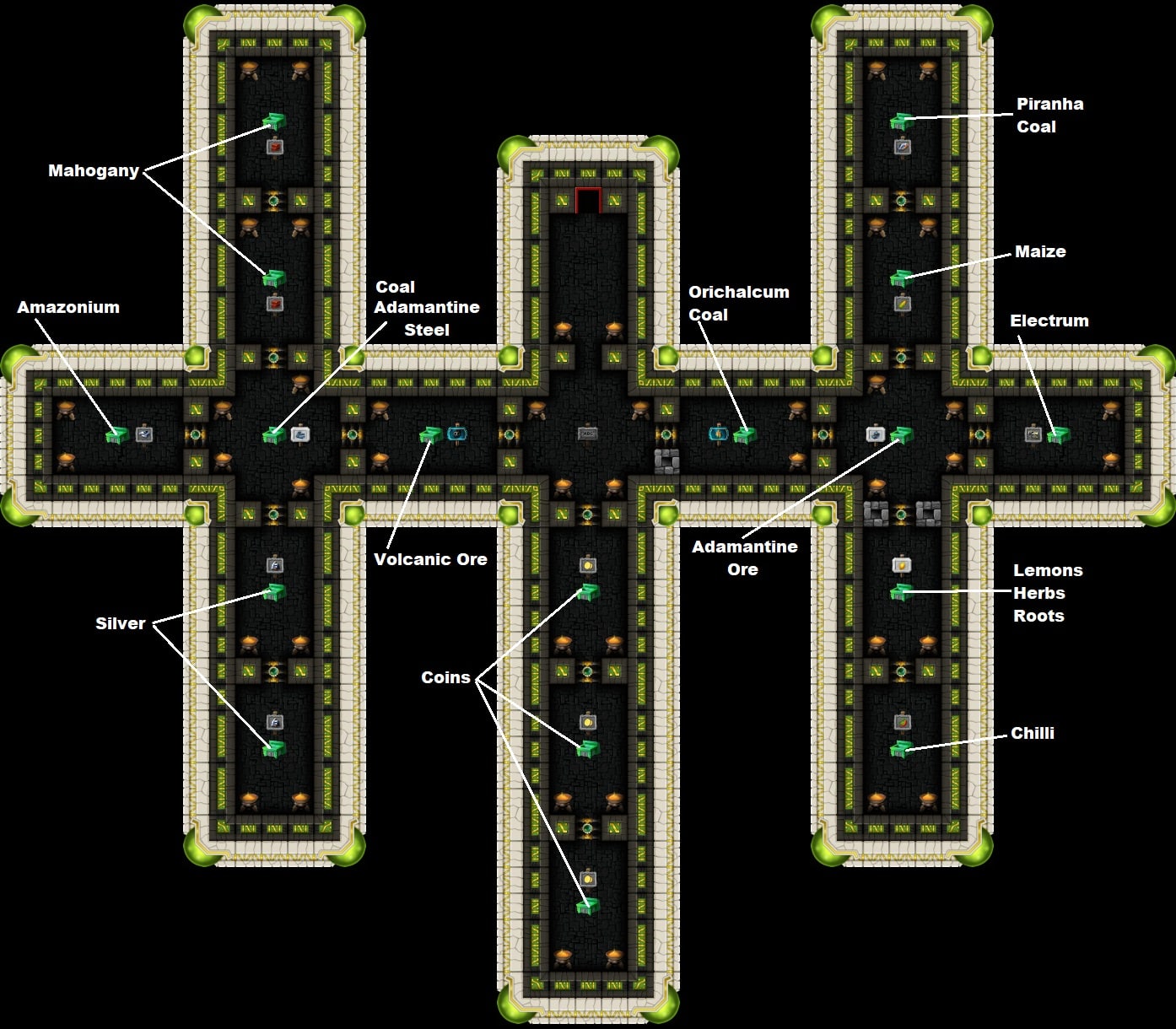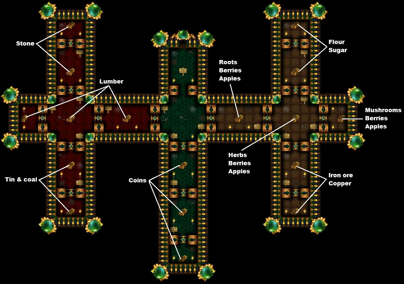 Each Green Ring mine consists of 17 treasure chests. You must open all of them. Each contains valuable materials.