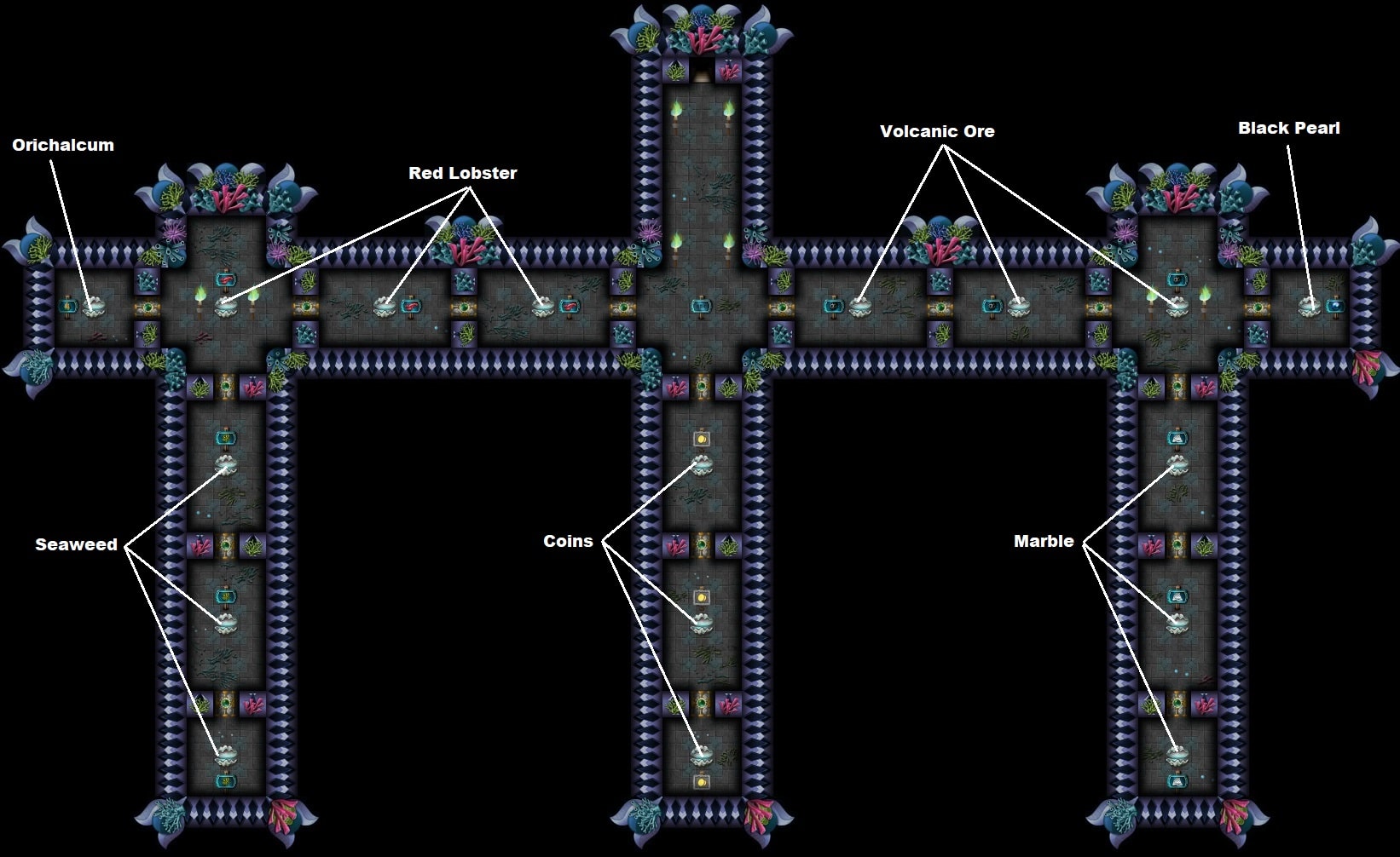You can find all the values for all 17 chests for each mine in the tables below. In case of multiple chests, the ones with smaller values are always those you encounter as the first in the mine.